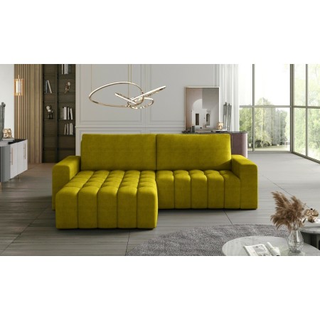 Bonett est un canapé d'angle de 245 cm de large qui s'adaptera aussi bien aux intérieurs dotés de petits espaces qu'aux salons spacieux. Ce meuble au design intéressant contraste avec les blocs ennuyeux. Le matelassage impressionnant de l'assise et les grands coussins du dossier ajoutent du charme. De larges accoudoirs ajoutent également au confort. Le siège, composé d'une combinaison de mousse T25 et de mousse HR, réagit plus rapidement aux changements de position et s'adapte donc mieux à notre corps, ce qui est particulièrement important pendant le sommeil. Le Canapé d'angle convertible Bonett est équipé d'une fonction sommeil, ce qui nous permet de transformer facilement et rapidement le canapé d'angle en lit. Le système DL est un moyen simple d'obtenir un canapé d'angle pliable : l'assise coulisse et le dossier se replie, ce qui nous donne une surface plane pour dormir. Nous gagnons également un conteneur de literie pour nous aider à garder les choses en ordre.