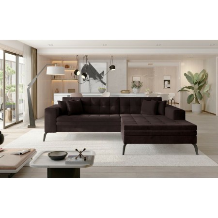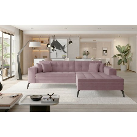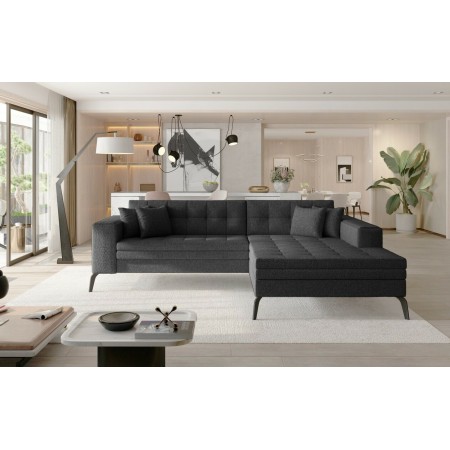 Le canapé d'angle convertible Solange fournira beaucoup d’espace de repos pour toute la famille. Les sièges profonds, à ouverture longue et à ressort ondulé avec mousse T30 aident à maintenir votre corps fermement en place et sont très résistants aux distorsions. De plus, un dossier incliné sous une légère pente maintient votre dos dans une position saine et affecte significativement l’utilisation de ce modèle. Squat régulier à la fois le siège et le dos ajouter des subtilités à l’ensemble du coin. La Solange est une conception longue, mince, à nez noir qui maintient le coin stable et rend le mobilier une brise légère. Les accoudoirs larges et les quatre coussins fournis affectent également le confort.