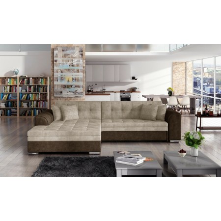Malgré l'absence d'espace de rangement pour la literie, ce modèle fonctionne très bien comme un endroit spacieux pour une nuit de repos. Le canapé d'angle Sorento allie modernité et confort. Si vous recherchez un canapé rembourré qui vous étonnera à la fois par sa couleur et sa fonctionnalité, ce canapé d'angle sera certainement le meilleur choix.