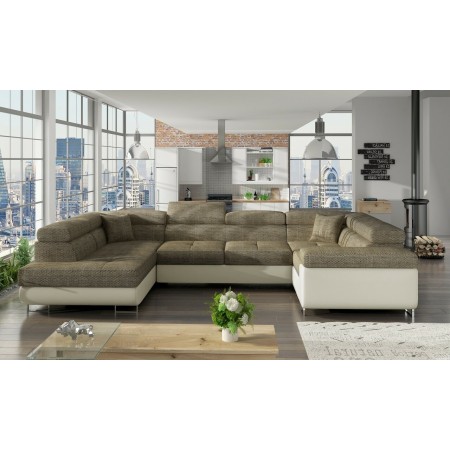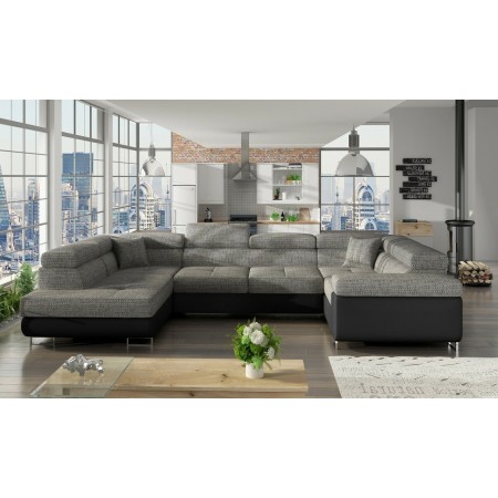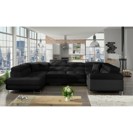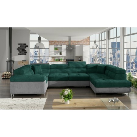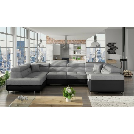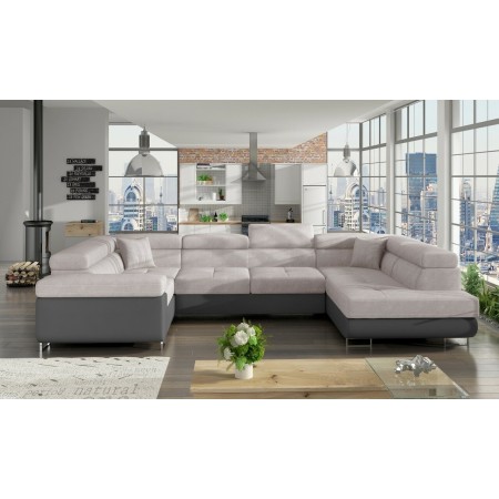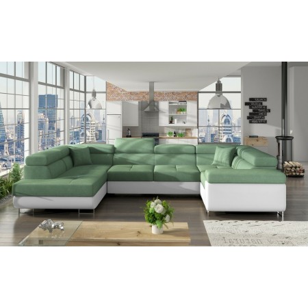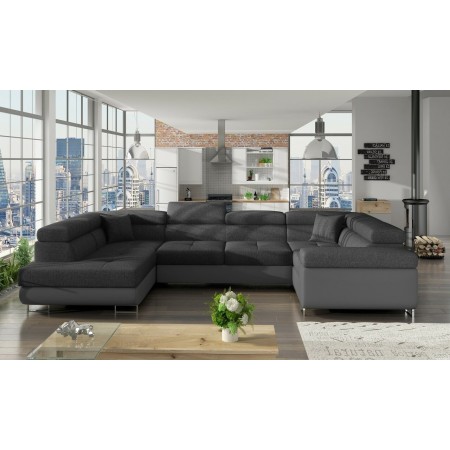LUTON to narożnik zaprojektowany z myślą o unikalnym designie i komforcie wypoczynku. Mebel ten zachwyca stylową, stabilną konstrukcją i jakością wykończenia. Podwójne siedzisko podzielone zostało na kilka kwadratowych modułów, które w połączeniu z podwójnymi oparciami tworzą bardzo charakterystyczne zestawienie. Prezentowany model wyposażony został ponadto w siedzisko ze sprężyną falistą oraz ruchome zagłówki. LUTON oferuje również przestrzeń do spania, rozsuwaną za pomocą systemu typu delfin. Praktyczny pojemnik na pościel oraz funkcja spania powodują, że narożnik ten odnajdzie się w niewielkich mieszkaniach jako dodatkowy mebel do spania.