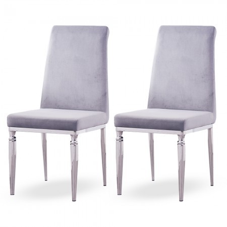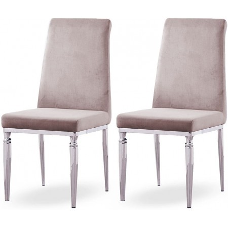El juego de sillas DEXTER es el complemento perfecto para una mesa moderna. Estas sillas de diseño encajan en un entorno contemporáneo. Este modelo le ofrece una comodidad óptima, gracias a su suave asiento acolchado. El suave tapizado es agradable a la vista y al tacto. El respaldo también está acolchado y proporciona un buen apoyo para la espalda, lo que hace que sea cómodo para usted mientras come. El terciopelo elegido para el tapizado es muy suave, lo que lo hace aún más confortable. Este conjunto de sillas de comedor es especialmente adecuado para quienes buscan sillas para completar la zona de comedor de su casa. El marco de acero inoxidable subraya la robustez de este producto, garantizando muchos años de uso. El acabado metálico también contribuye al atractivo estético de la silla. La funda de terciopelo está perfectamente estirada para mejorar el aspecto, pero también refuerza la estructura. Estas sillas de comedor de diseño tienen además la gran ventaja de que pueden combinarse con cualquier decoración. Pueden colocarse en cualquier lugar, en un interior clásico o contemporáneo. Estas sillas de diseño no son sólo asientos, son elementos decorativos que aportarán armonía a su interior