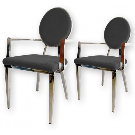 El juego de 2 sillas barrocas es el acompañamiento perfecto para una mesa moderna. Estas sillas de diseño encajarán en un entorno contemporáneo. Este modelo le ofrece un confort óptimo gracias a su asiento de suave acolchado. La suave tapicería es agradable a la vista y al tacto. El respaldo también está acolchado y proporciona un buen apoyo para la espalda, lo que hace que sea cómodo para usted mientras come. El terciopelo elegido para el tapizado es muy suave, lo que lo hace aún más confortable. Este conjunto de sillas de comedor es especialmente adecuado para quienes buscan sillas para completar la zona de comedor de su casa. El marco de acero inoxidable subraya la robustez de este producto, garantizando muchos años de uso. El acabado metálico también contribuye al atractivo estético de la silla. La funda de terciopelo está perfectamente estirada para mejorar el aspecto, pero también refuerza la estructura. Estas sillas de comedor de diseño tienen además la gran ventaja de que pueden combinarse con cualquier decoración. Pueden colocarse en cualquier lugar, en un interior clásico o contemporáneo. Estas sillas de diseño no son sólo asientos, son elementos decorativos que aportarán armonía a su interior