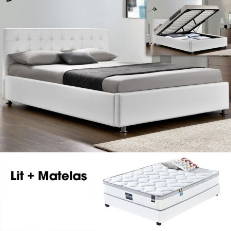 Il letto Capitole è un letto completo da 160 cm. È molto pratico perché ha una base sollevabile (grazie ai pistoni) che permette di beneficiare di uno spazio di stoccaggio supplementare.