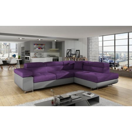 Prosta wytrzymała konstrukcja została przełamana ciekawymi dekoracjami w postaci lekko zaokrąglonych boków, szerokiego podłokietnika, wysokich, metalowych nóg chromowanych na wysoki połysk, delikatnych pikowań i przeszyć na siedziskach oraz wygodnych zagłówków. Dodatkowym atutem jest opcja regulowania trzech zagłówków, co znacznie poprawia komfort wypoczynku, umożliwiając dopasowanie mebla do aktualnych potrzeb i preferencji. Narożnik dostępny jest w dwóch wersjach kolorystycznych - mebel może być utrzymany w jednolitym odcieniu lub stanowić zestawienie dwóch kolorów - siedzisko i oparcia są wówczas jednokolorowe, natomiast dolna część mebla posiada kontrastowy odcień. Narożnik Anton można bez trudu dopasować do ogólnej aranżacji wnętrza.