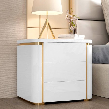 Un design moderne avec une silhouette carrée et des tons blanc et or brillants ajoute un attrait élégant et une touche sophistiquée à votre chambre