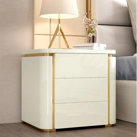 Table de chevet avec trois tiroir et base couleur or KAUFMAN